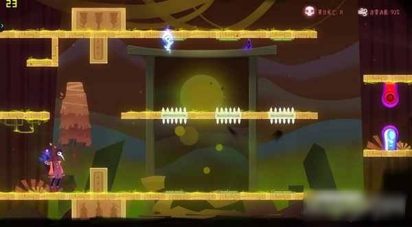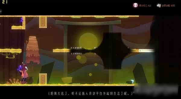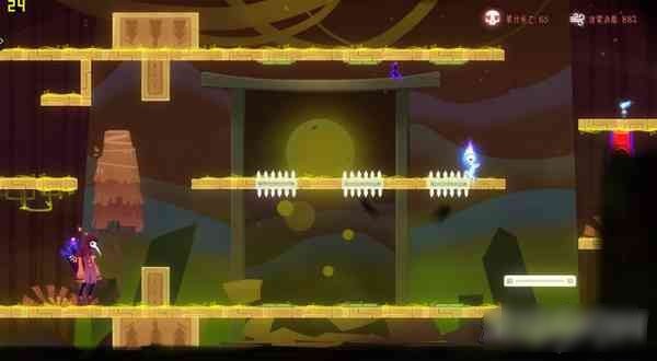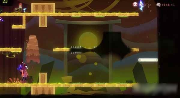 操纵小人走最下面的通道到右边,注意中间不能停留,上面白色的刺会掉下来。等到白色移动板子与第三层平齐时走上去,等到板子移动到第三层,然后到最左边得到可收藏的道具(口红)。