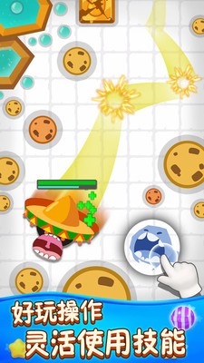 吃饼干来、喝水、扔人,极速扯成长用以充分发挥你的竞技游戏技巧!升级你的角色并掌握独特的IO游戏概念的简单游戏!