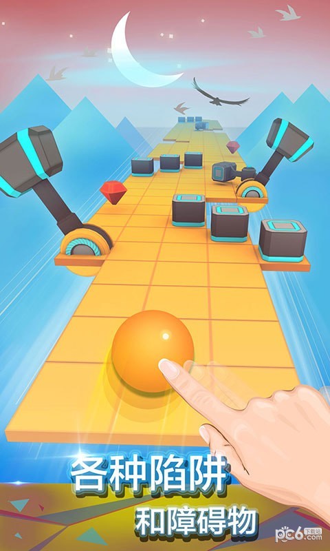 游戏操作极其简单,只需要使用手指左右移动小球,躲避各种障碍物,同时背景配有酷炫的音乐。画面精美,打造了数十款不同的地形和场景,给玩家营造丰富爽快的游戏体验。