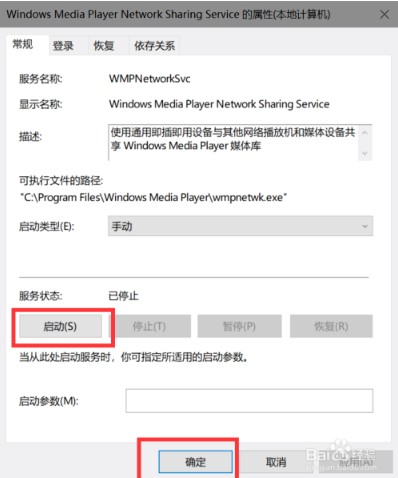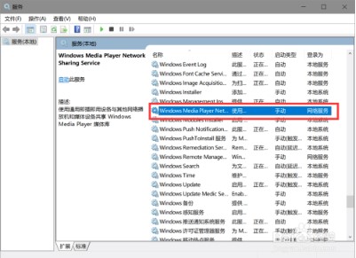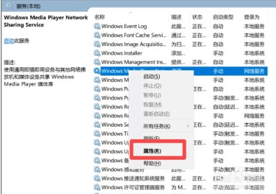 服务属性框运行,仔细观察界面,找到windows media player network~