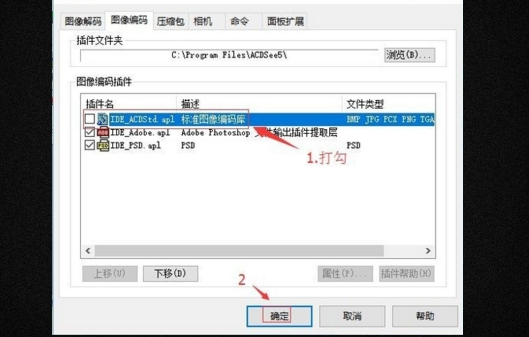 5、最后,在;图像编码”选项卡中,检查并把;IDE_ACDStd.apl 标准图像编码库”打上勾,然后单击;确定”按钮即可解决问题,如下图所示。