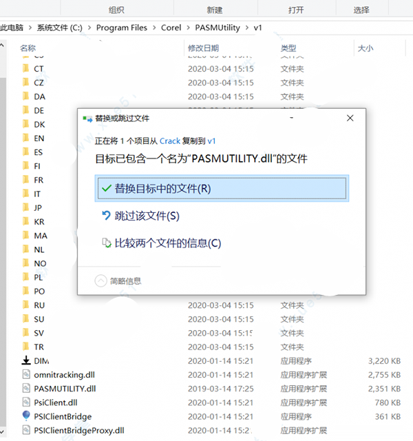2、打开Crack文件夹,复制PASMUTILITY.dll到软件安装目录下\PASMUtility\v1替换原文件