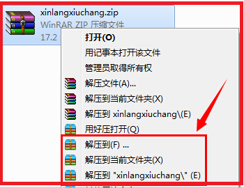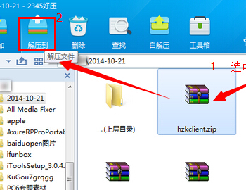 2、在窗口中,找到希望解压的压缩文件,点击选中后,点击软件主界面左上第二个【解压到】图标。