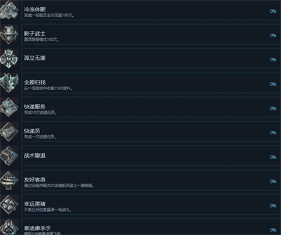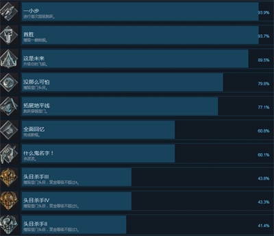 1:成就有很多,一小步,首胜,这是未来,没那么可怕,拓展地平线,全面回忆,什么鬼名字,头目杀手3,头目杀手四,头目杀手二;