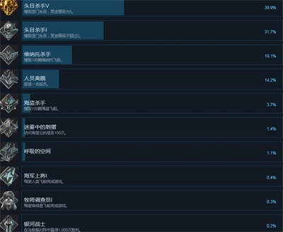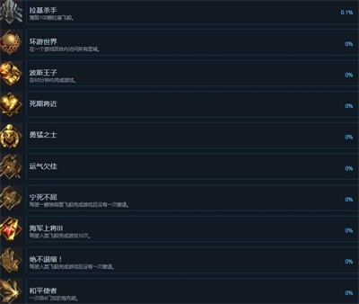 3:拉基杀手,环游世界,波斯王子,死期将近,勇猛之士,运气欠佳,宁死不屈,海军上将3,绝不退缩,和平使者等等成就有很多,同时成就下面也有对应的完成的要求。