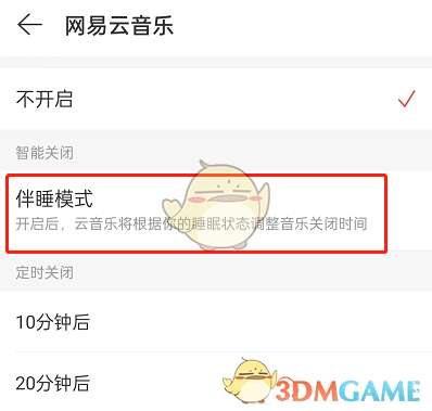 2、网易云音乐的伴睡模式在定时关闭设置中,我们在设置定时关闭的过程中,还可以根据自己的需求选择是否要开启伴睡模式,这样系统就会智能分析你的睡眠状态,并根据实际情况来调整关闭音乐的关闭时间了,可以更加有效的帮助广大用户在睡觉前听歌助眠。