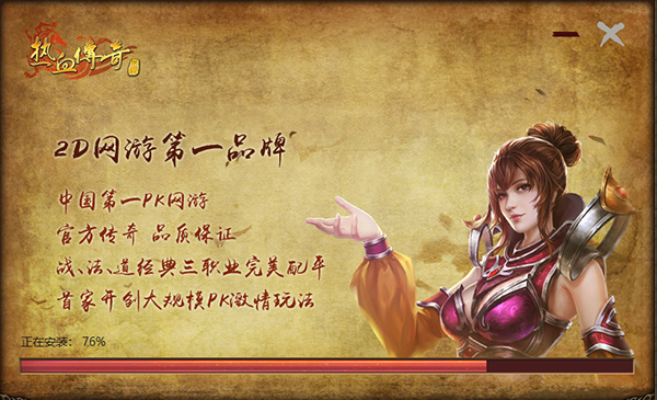 3、接下来进入到盛大热血传奇游戏正在安装界面,如下图所示,我们需要耐心等待安装进度条完成,这个安装速度需要看电脑的配置,配置较高的电脑安装是比较快的,我们耐心等待既可。