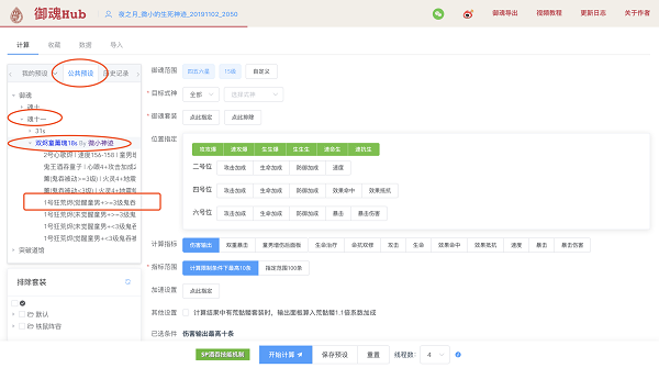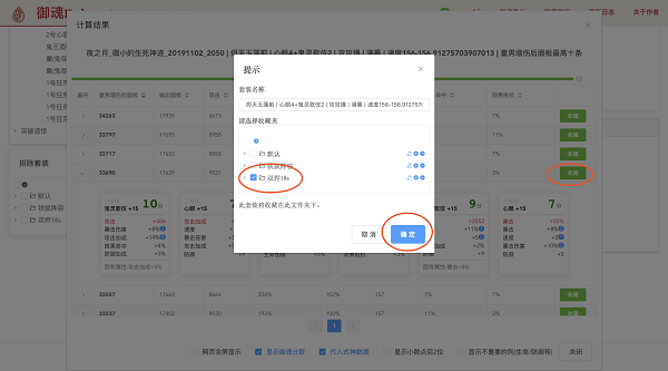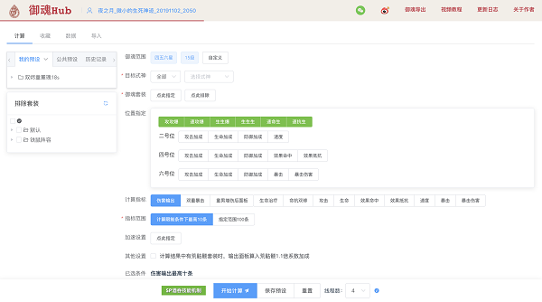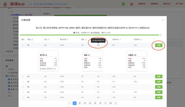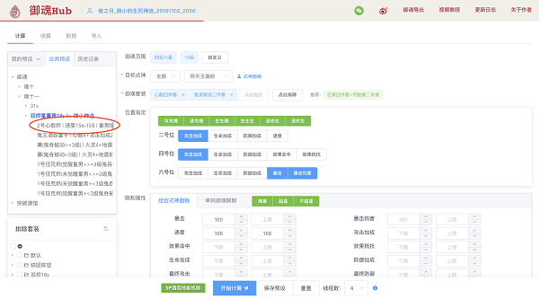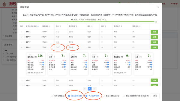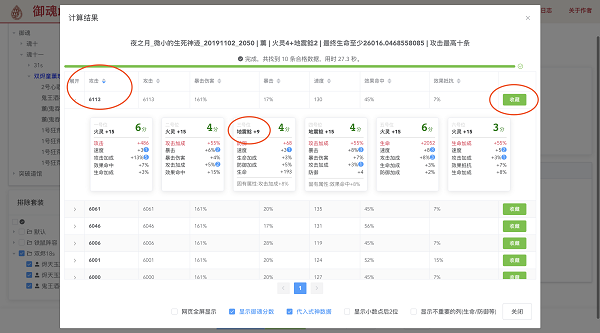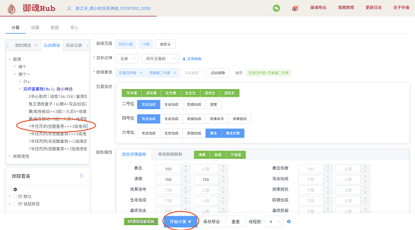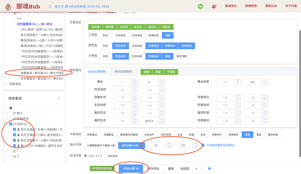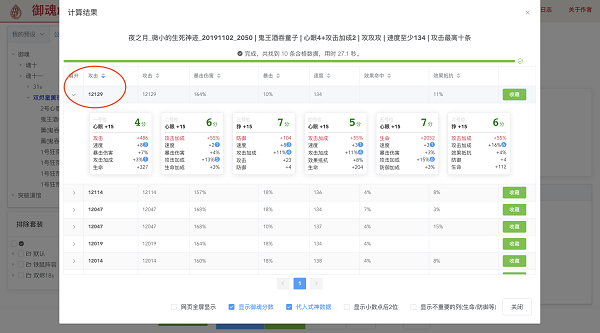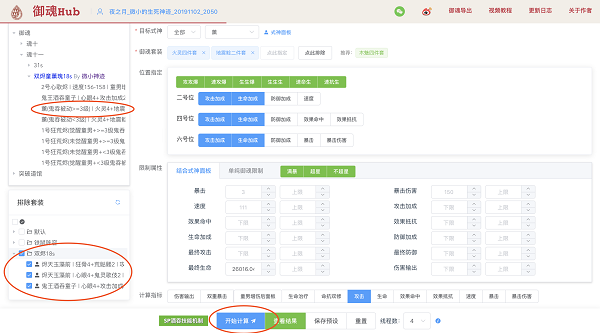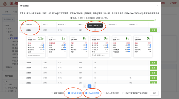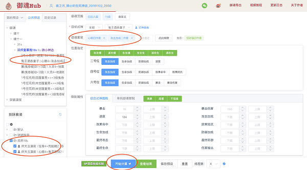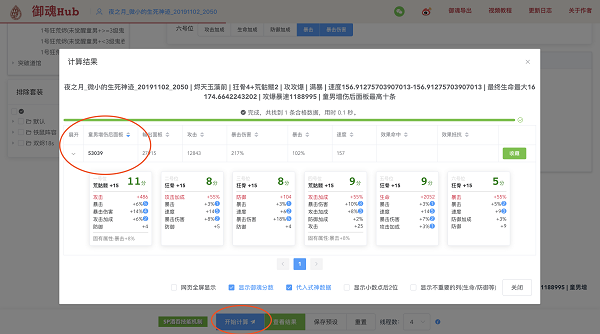 点击下方的开始计算,可以瞬间找到刚才这套御魂,如下图所示