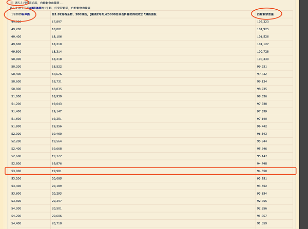 如上图所示,53000这一档,白蛇剩余最多血量是94350