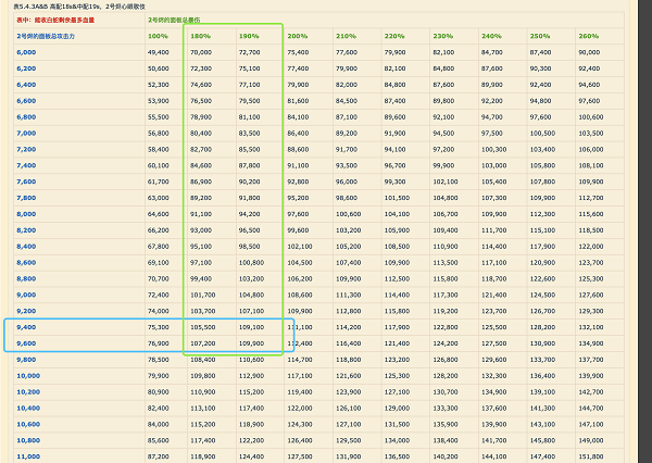 据红圈中的总攻击力9521和爆伤185,去档位表查询这个面板能收尾多少血的白蛇,心眼歌伎的表格是5.4.3A&B,如下图所示: