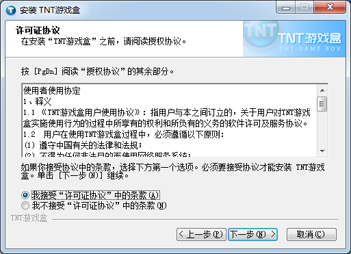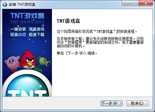 1.到本站下载安装tnt游戏盒,打开安装程序,点击下一步继续安装