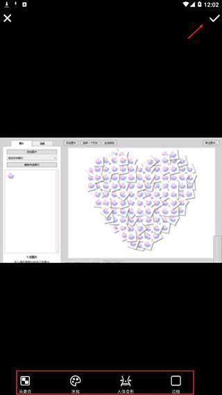 5�����⣬����������ʵ�ù��ߣ������Զ�ͼƬ���������ˡ�Ϳѻ��������Ρ��߿�����ӣ��༭��ɺ��Ե�����Ͻǵ�√���棻