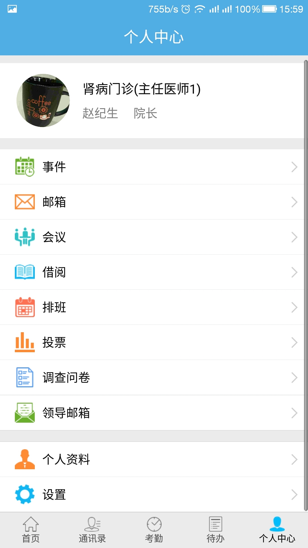 用户可通过上海天健OA客户端查看和处理来自于上海天健OA协同办公与HIS数据对接的信息。