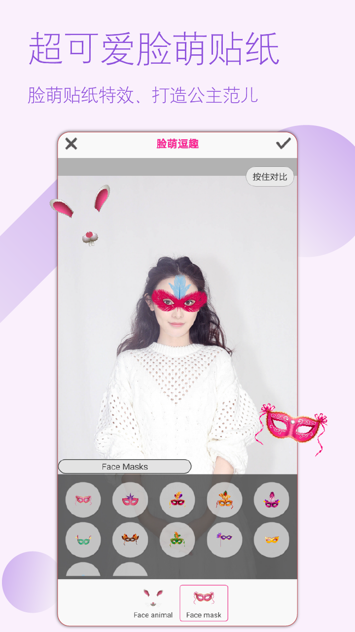 2、精美、好玩有趣的脸萌、美图贴纸选择