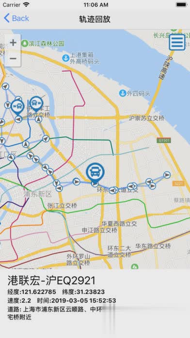 2、基于车载卫星定位设备,提供车辆实时跟踪显示、历史轨迹回放、里程统计、视频监控等功能。对于危险品车辆用户,也可以通过这个应用回应主管部门的调查。
