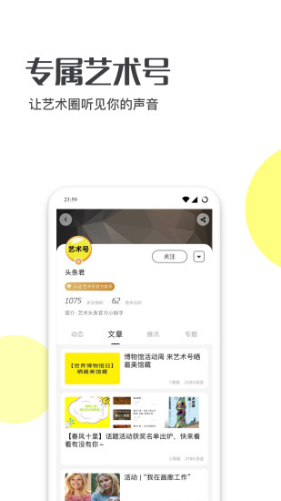 3、实现精准新闻推送,带给用户个性化体验,是获取艺术资讯不可或缺的掌上工具。