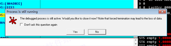 6、点击后,ollydbg会提示重新加载可执行文件,我们点击yes,如下图。