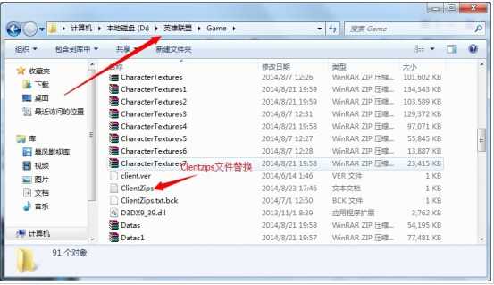 注:请把下方的解压缩文件,解压缩后把Clientzips放到”英雄联盟\GAME“文件里即可解决。