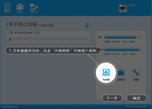 2.手机连接成功后,点击手机大师上的“开始刷机”开始进入刷机。
