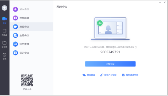 2、点击开始会议按钮,进入云会议室开始视频会议。