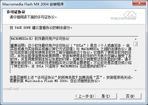 1.到本站下载安装Macromedia Flash MX 2004,打开安装程序,点击下一步继续安装