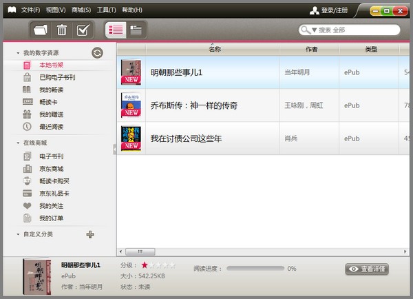 电子书阅读目录数不胜数,在这里还支持海量电子书籍线上线下观看,同时支持本地下载,支持ePub、PDF等主流格式和多媒体电子书籍,让您随时随地享受精致的阅读体验。- 下载地址(pc版)