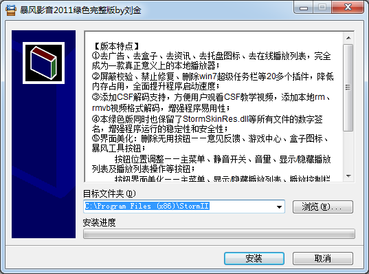 1、到本站下载安装暴风影音2011,打开安装程序,点击浏览选择安装位置