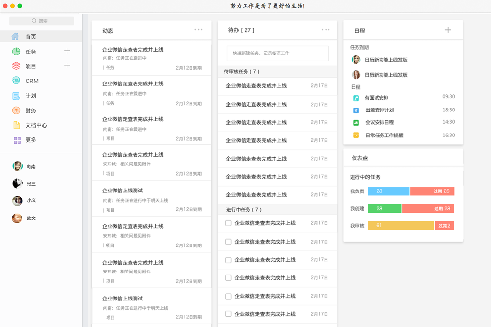 1、个人、团队和企业的高效工作平台,提升工作执行力。