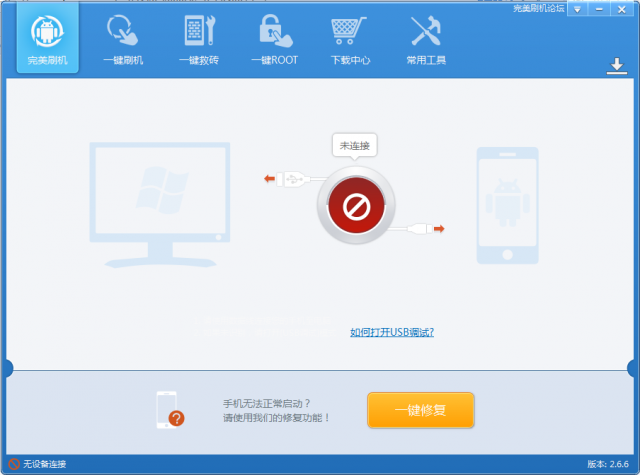 将手机连接电脑,打开ROOT助手,等待ROOT助手连接手机。