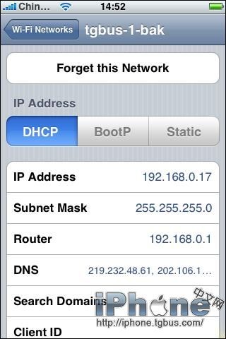 2、下载WinSCP,并在你的本机电脑上安装好此软件后,将电脑重新启动一遍。用iPhone进入Setting -> Wifi ,选择连接一个无线网络后,点击小箭头图标进入wifi设置,记下iPhone的IP Address(就是iPhone的IP地址),然后在在Setting界面点击 General -> Auto-Lock -> 改成 Never (将自动锁屏功能关闭)。