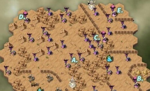 5. 先打A点怪物,三个怪物都清理后,可以通过中间的村庄到达敌方,粮草营地B,烧毁粮草后可降低全部敌人的血量。同时,通过村庄时,村民会为你解锁C点的一条小路。