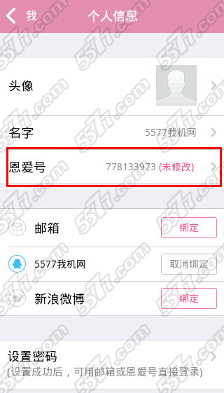 保存成功后我们就可以在个人信息中看到我们的恩爱号已经更改成我们设置的号码了。
