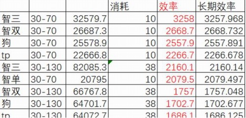 长期收益率 (考虑多目标,考虑狼上岗时间加倍):三目标智70 双目标智70 狼70 狗 70 tp弓70 三目标智130 单目标智70 双目标智130 狼130 狗130 tp弓130 单目标智130(收益率只有70狼的一半)