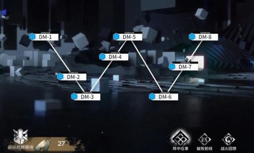 其中最值得我们去反复刷的是阵中往事里的八关,从DM-1至DM-8。如果是新博士,所有的这些关卡在首次通关时,都会给予源石及首通活动代币的奖励,之后也可以反复刷,获取更多代币。但对于已经经历过活动的博士而言,是没有首通奖励的。这是我们在此次活动期间要将所有理智投入的地方,也是活动代币的主要来源。