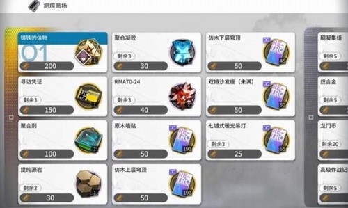 也正因为如此,能兑换到的材料也大幅下降了,包括:干员【铸铁】的信物、【七城风情餐厅】家具、寻访凭证、高级养成素材、龙门币、作战记录、家具零件等等。