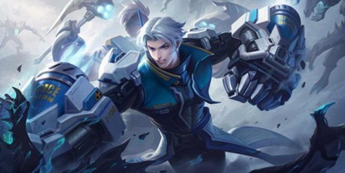 结合达摩英雄大拳套的武器特点与星际陆战队的故事背景进行创作,并提取了相关元素,白金蓝的整体配色更显星际与秩序感,金色的胸章也暗示了皮肤星际陆战队首领的身份。