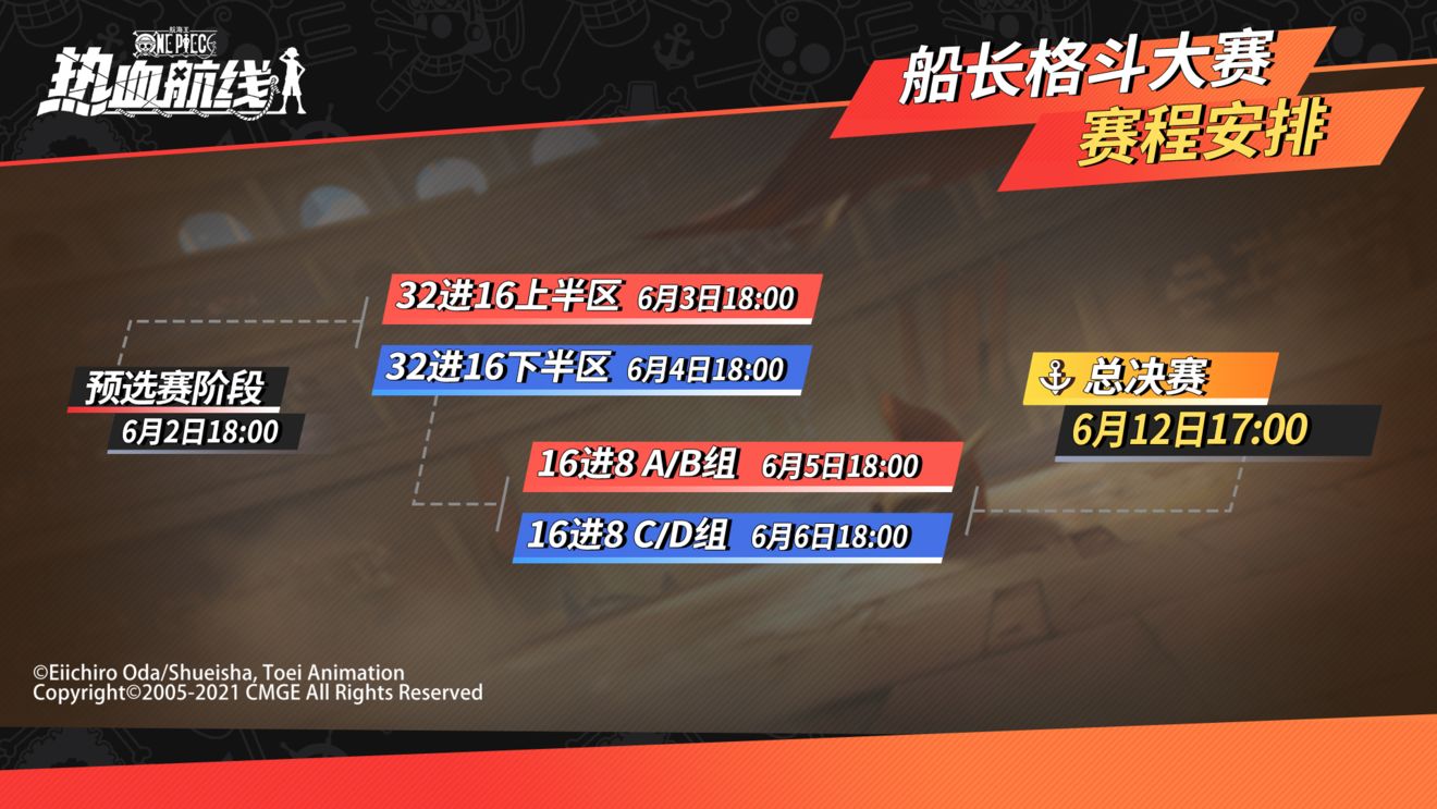 《航海王热血航线》船长格斗大赛共分为:预选赛、淘汰赛及线下总决赛,各赛段具体时间如下: