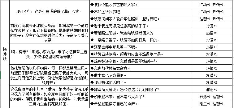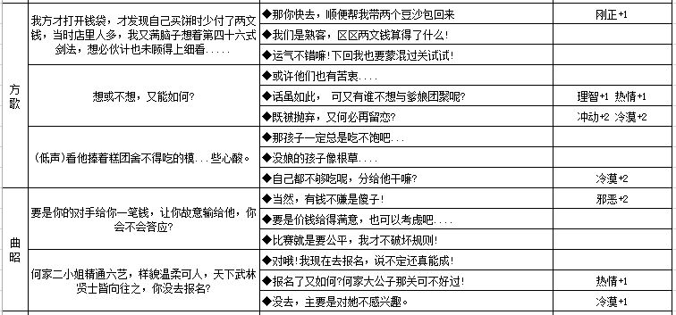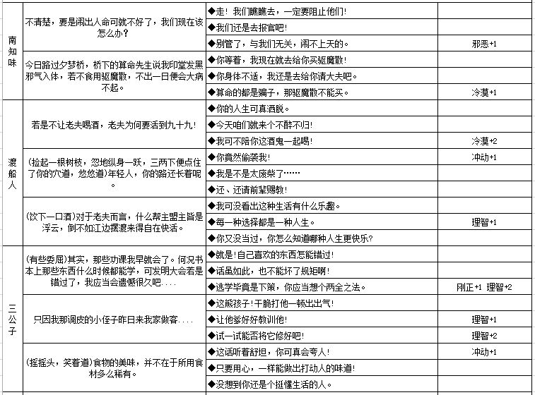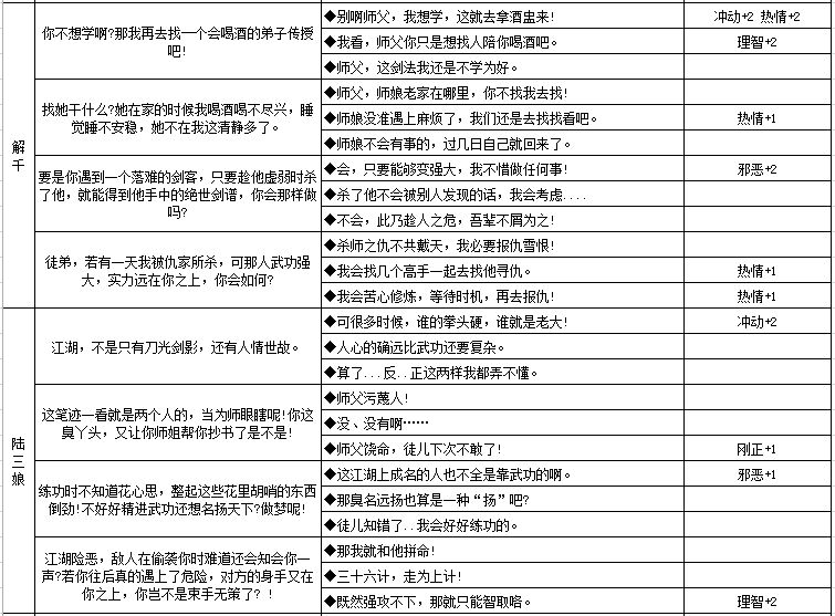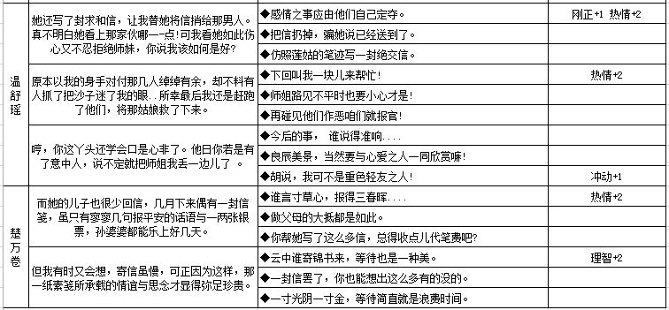 四、六大NPC人物性格养成数据