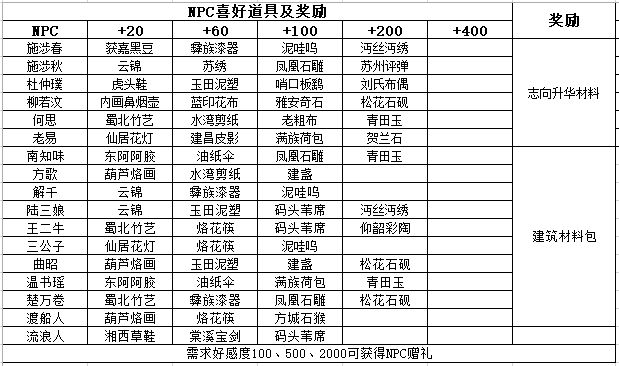 二、NPC喜好道具及奖励