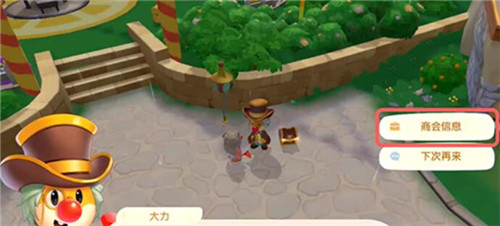 2、在爱心广场找到大力,并与之对话,这样玩家就可以选择商会信息。