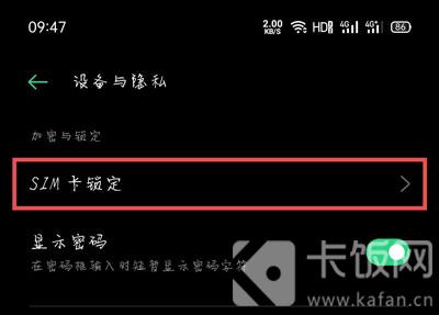 3、点击进入设备与隐私页面后,点击【SIM卡锁定】;