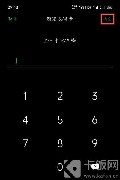 6、在开启SIM卡密码(PIN码)之前,需要输入之前设置的密码,如果之前未设置,可使用初始密码1234开启;