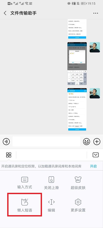 2、点开功能按钮后下面的选项中有懒人短语选项,点击懒人短语,进入编辑。