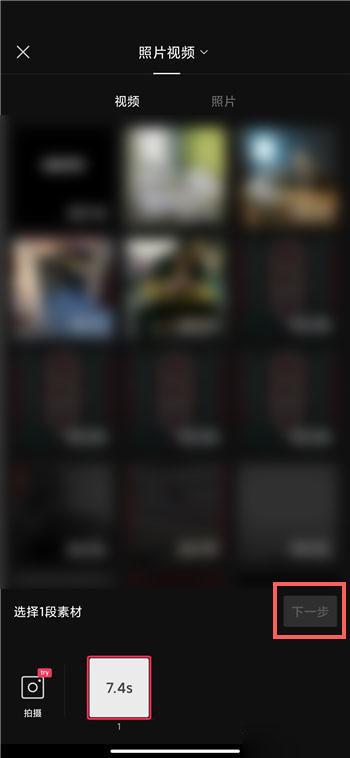 8.最后从相册中找到之前保存的视频,选择视频点击右下角的【下一步】;