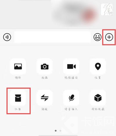 2、点击进入聊天页面后,点击右上角的【+】按钮,选择【红包】;
