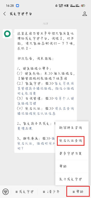 5.在下方选择【帮助 - 实名认证查询】进入查询自己的实名认证信息,如果没有实名认证会提示进行实名;
