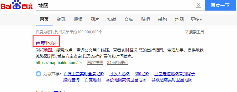 1.在电脑上访问百度,搜索【地图】,点击出现的第一个【百度地图】结果进入百度地图官网;
