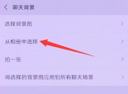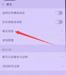 7、在聊天的功能界面中我们需要点击【聊天背景】,进入到聊天背景界面中;