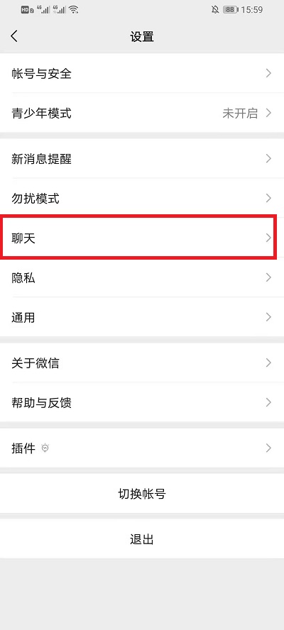 6、在设置界面中我们需要点击【聊天】功能,进入到聊天功能界面;