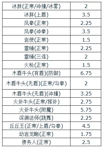 红色为不能打断冰胖发呆/冰雾喷射动作